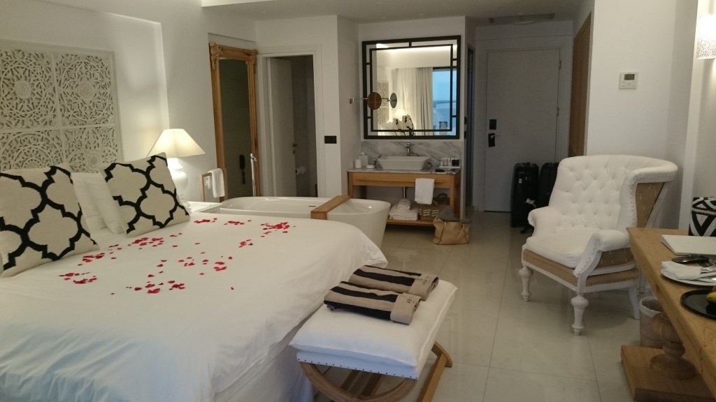 Vor genau 2 Jahren und nur 3 Tage nach unserer Hochzeit haben wir uns für unsere, wie wir es nennen kleine Hochzeitsreise, auf den Weg nach Kreta gemacht. Klein deshalb, da wir nach unserer Hochzeit nur wenige freie Tage hatten, aber dennoch flittern wollten. Die richtige große Hochzeitsreise sollte dann im November auf die Malediven gehen. Auf Kreta hatten wir uns für einen Aufenthalt im wunderschönen Abaton Island Resort & Spa im Norden der Insel entschieden. Die Wahl für dieses Hotel war schnell gefallen, da es damals gerade neu eröffnet war, Luxus vereint mit moderner Architektur bot und zudem nicht allzu weit vom Flughafen Heraklion entfernt war. Wir waren diesmal nicht auf große Erkundungstouren vor Ort aus, sodass die Annehmlichkeiten und der Comfort dieses Hotels für uns im Vordergrund standen. Einmal am Flughafen in Heraklion angekommen, ist man sowohl mit dem Taxi oder dem Mietwagen in nur 20 Minuten am Hotel. Eine sehr gut ausgebaute Schnellstraße führt quasi bis fast vor die Hoteltür. Für späte Ankünfte oder frühe Abflüge ist diese Entfernung irgendwie ideal, kann man doch wirklich jede Minute des Urlaubs richtig auskosten. Schon bei der Ankunft im Hotel wurden wir so herzlich willkommen geheißen, dass man sich direkt wohlfühlen musste.