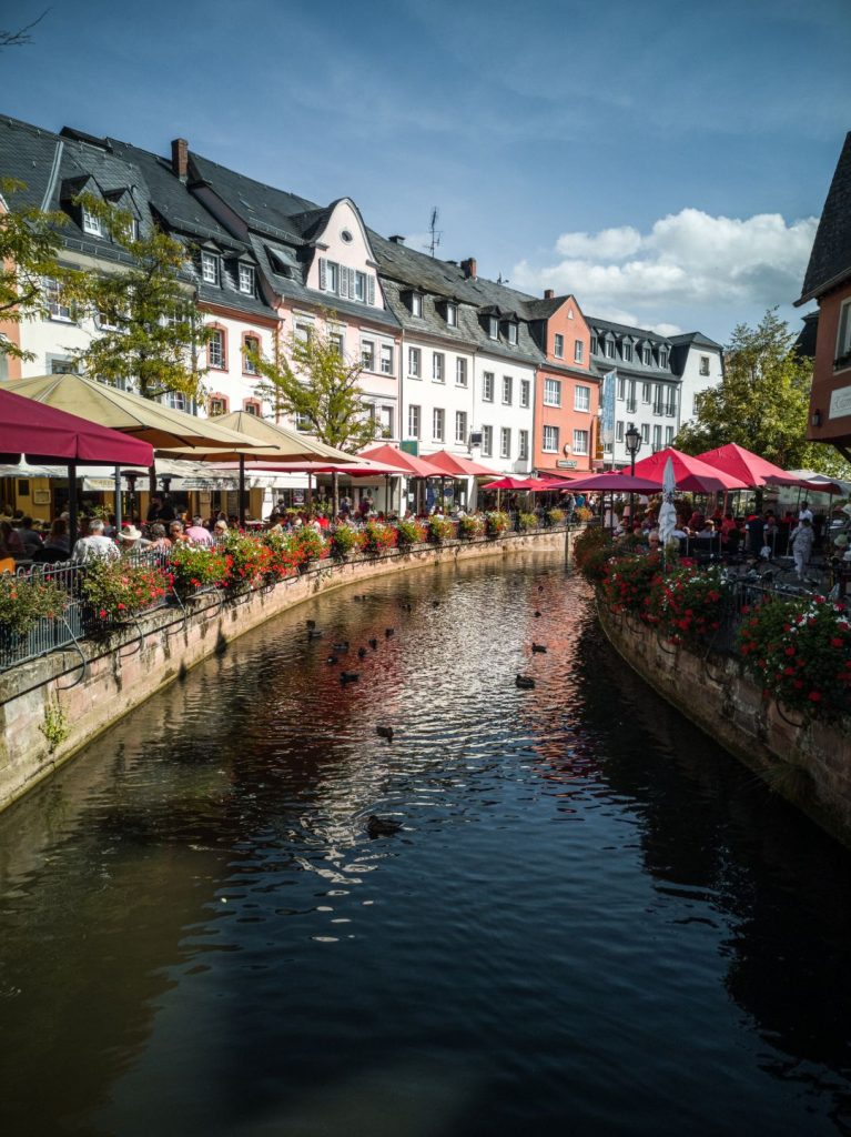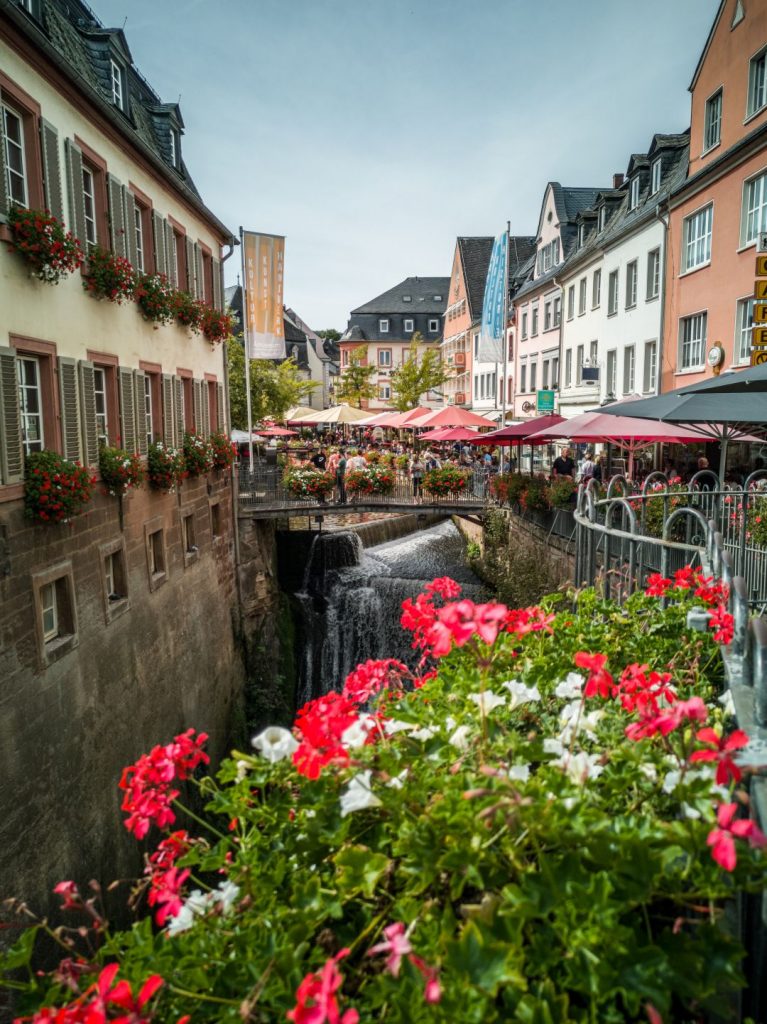 Ich war überrascht wieviele ausländische Touristen hier unterwegs waren. Sie alle schienen schon vor mir von dem Reiz der kleinen Stadt gehört zu haben. Nun ja, Frankreich und Luxemburg sind nicht weit. Da bietet sich ein Ausflug in das Nachbarland natürlich an. Und tatsächlich fühlt man sich in Saarburg auch ein wenig wie in Frankreich. Der alte Kern mit seinem Wasserlauf und den ganzen Blumen hat mich schon sehr an das Elsaß erinnert.