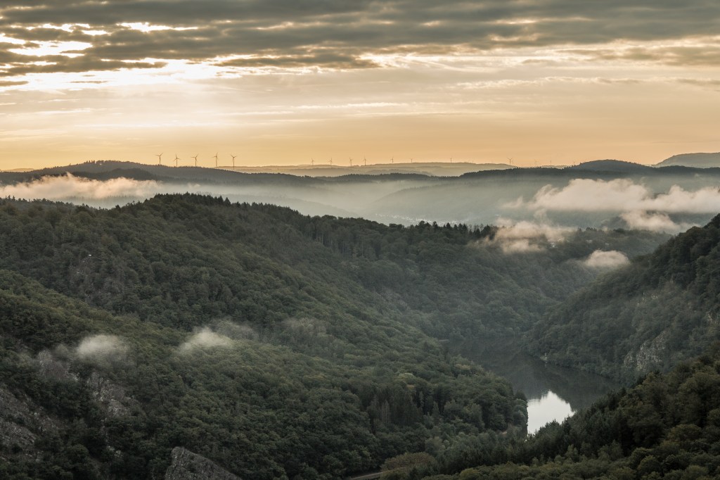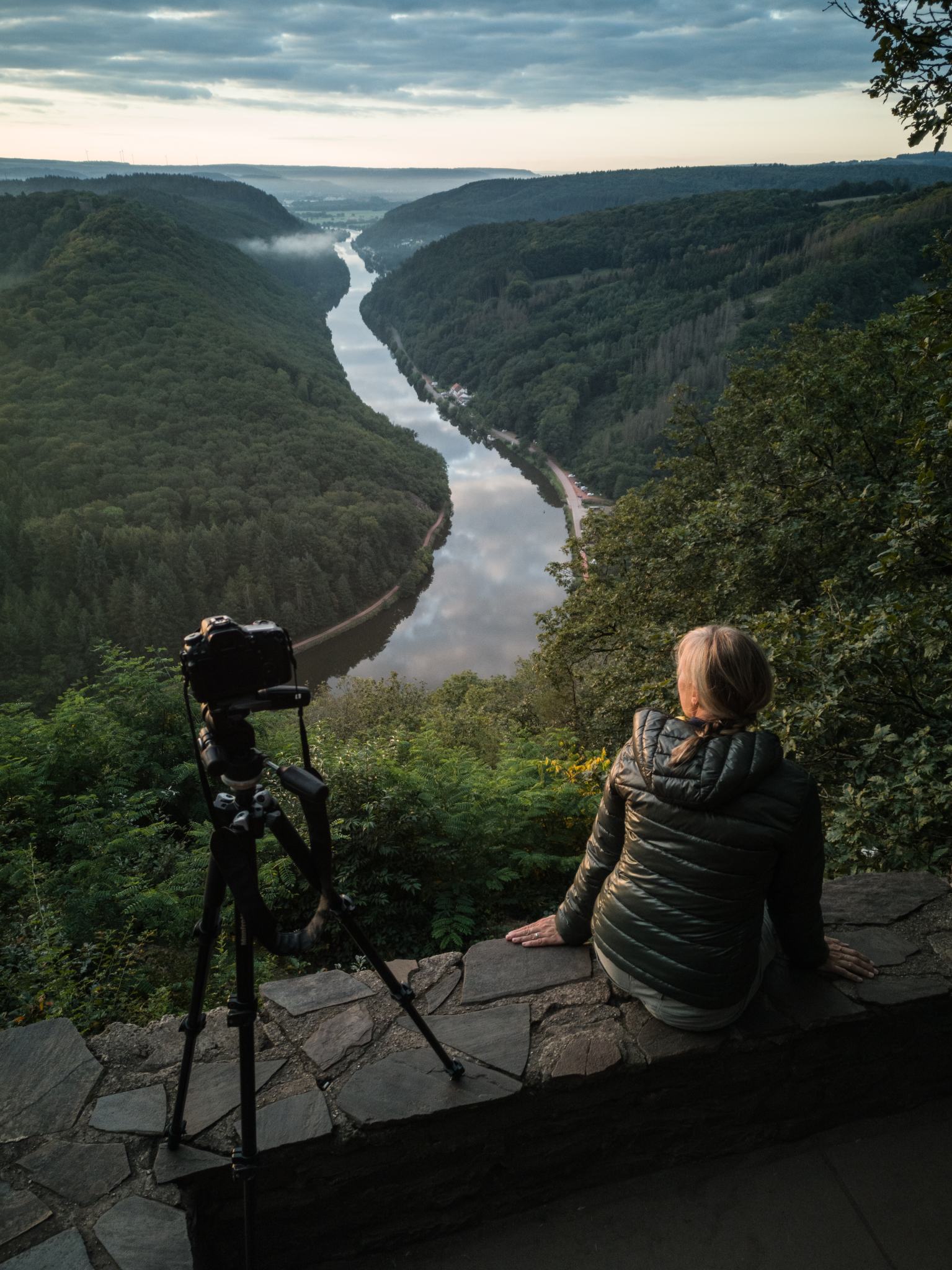 Schon sehr lange stand ein Besuch der Saarschleife zum Sonnenaufgang auf meiner kleinen feinen Bucketlist. Da ich aber 2 Autostunden entfernt wohne, wollte ich, dass für diesen Tag einfach alles stimmt. Wäre es doch zu schade soweit zu fahren, um am Ende mit komplett bewölktem Himmel am Aussichtspunkt zu stehen. Unter ständiger Beobachtung der Wettervorhersage hatte ich meinen Fototrip für Ende September geplant. Die Sonne geht um diese Zeit nicht allzu früh auf, was mir in der Frühe doch etwas Luft gab. Gegen 5 Uhr morgens ging es los, und ich stand pünktlich zum Sonnenaufgang am Aussichtspunkt auf die Saarschleife. 2 weitere Fotografen waren schon vor Ort und hatten ihre Ausrüstung aufgebaut. Schnell habe ich mir ein Plätzchen gesucht, mein Stativ aufgebaut und losgeknipst.