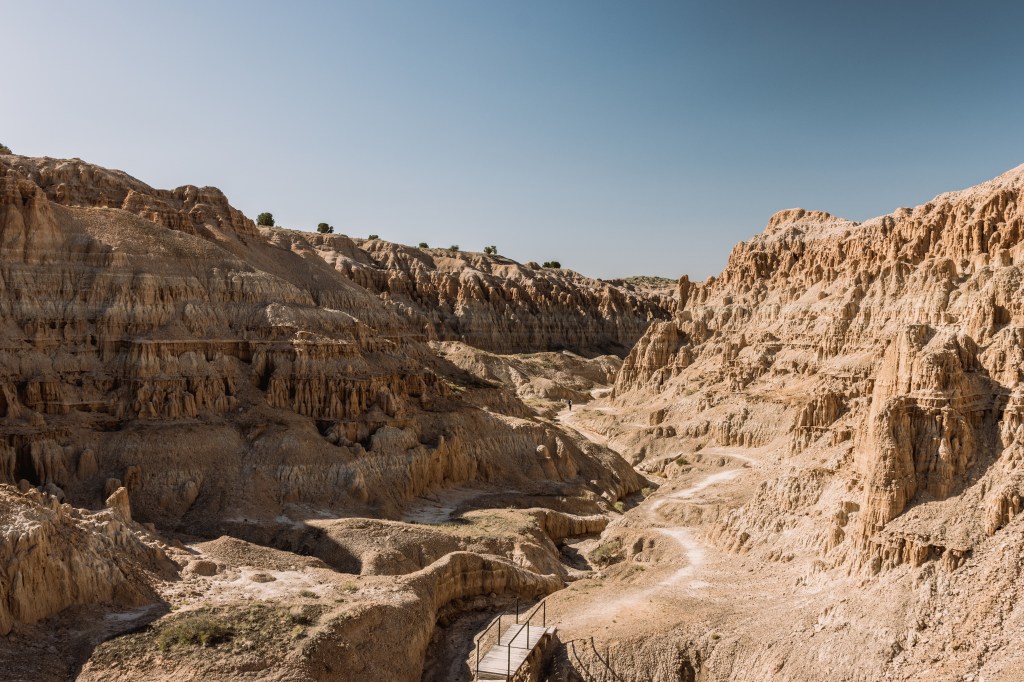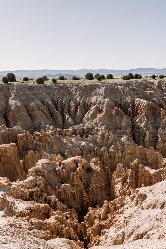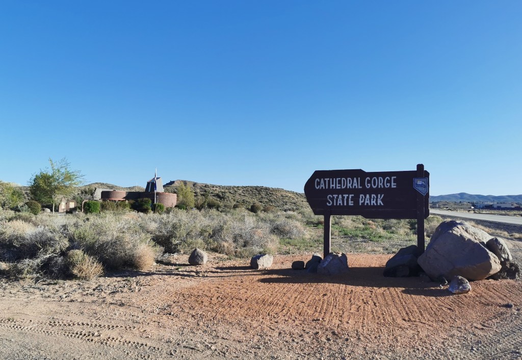 Etwa 3 Stunden nördlich der Stadt, an der Grenze zum Bundesstaat Utah, liegt der Cathedral Gorge State Park. Die orangeroten Felsformationen erinnern an den Bryce Canyon National Park in Utah oder das Valley of Fire in der Nähe von Las Vegas. Das Besondere am Cathedral Gorge State Park ist aber sein geringer Bekanntheitsgrad. Während die meisten National Parks mit ähnlicher Landschaft hier im Südwesten der USA von Besuchern stark frequentiert werden, liegt dieser kleine State Park noch im Dornröschenschlaf. Es mag an der Abgeschiedenheit liegen, denn drumherum ist gefühlt wirklich nichts.