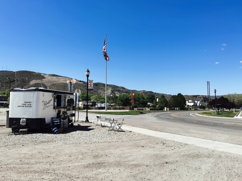 Entlang der Route hatte ich naiverweise gedacht an einer der bekannten amerikanischen Kaffeeketten auf einen Kaffee einkehren zu können. Schließlich war ich ja schon lange auf den Beinen und hatte mich auf eine Koffeinpause gefreut. Da der Highway aber nur einer Landstraße glich, war auch das Fehlanzeige. Kurz vor dem State Park hatte ich jedoch zu meiner Überraschung diesen kleinen Foodtruck passiert. Früh morgens war der noch geschlossen. Nach meiner Wanderung und einigen Fotostopps später hatte ich mich dann aber riesig auf eine Kaffeepause gefreut.