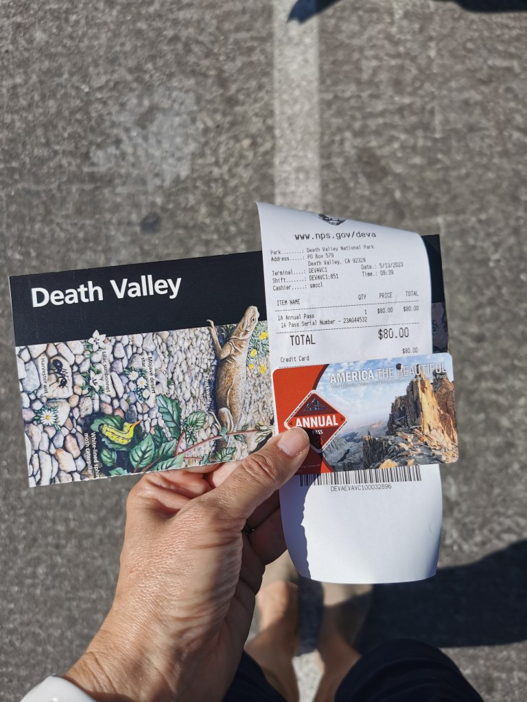 Die Kosten für den National Park liegen übrigens bei 30 US Dollar. Mit seinem Ticket kann man dann innerhalb von 7 Tagen rein- und rausfahren. Was sich besonders anbietet, wenn man genug Zeit und Lust mitbringt, um zum Beispiel zu verschiedenen Tageszeiten zu fotografieren. Der Ticketkauf im Death Valley verläuft einfach und problemlos. Inzwischen kann man das Ticket auch hier an Automaten per Kreditkarte erwerben. Wer sich jedoch länger in den USA aufhält und mehrere National Parks besuchen möchte, dem empfehle ich die Jahreskarte. Da der Zugang zu den Parks zwischen 20 und 50 Dollar pro NP liegt, ist die Gebühr von 80 Dollar für 12 Monate für alle Parks wirklich eine gute Investition. Um so einen Jahrespass zu kaufen, muss man allerdings das Besucherzentrum aufsuchen. Hier erhält man dann eine Art Chipkarte sowie eine Übersichtskarte des Parks. Besucht man in Zukunft weitere Parks, die noch nicht automatisiert sind, zeigt man einfach seinen unterschriebenen Annual Pass (Jahreskarte) inklusive Ausweis dem Ranger. Die Karte ist nicht übertragbar. Gibt es aber nur noch Automaten für den Ticketkauf, muss man kurz zum Besucherzentrum und sich einen Zettel für die Windschutzscheibe abholen.