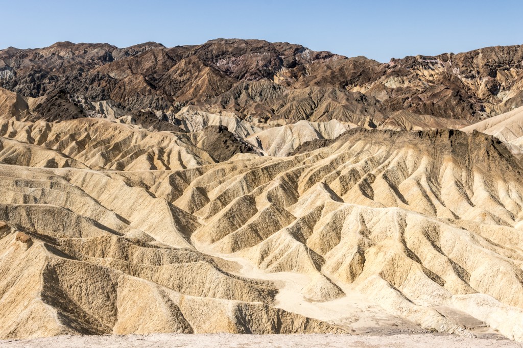 Für den zweiten und letzten Tag meines beruflichen Aufenthalts in Las Vegas hatte ich mich schlussendlich für eine Fahrt ins Death Valley, das Tal des Todes, entschieden. 2 Mal hatte ich diesen National Park in Kalifornien schon auf vorangegangenen Aufenthalten in der Entertainment Metropole Las Vegas besucht. Da diese Besuche aber schon lange zurückliegen, wollte ich mir einen aktuellen Eindruck verschaffen. Circa 2 Autostunden westlich von Las Vegas befindet sich mit dem Death Valley der heißeste und tiefste Punkt des amerikanischen Kontinents. 86m unter dem Meeresspiegel gelegen, wird es hier in den Sommermonaten durchaus bis zu 50 Grad heiß. Ein großer Wasservorrat im Auto sowie eine Kopfbedeckung sind bei diesen Temperaturen unerlässlich.