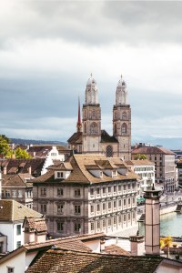 Das unübersehbare Wahrzeichen der Stadt, das Grossmünster mit seinen Doppeltürmen, weist den Weg rechtsseitig der Limmat in den alten Teil der Stadt.