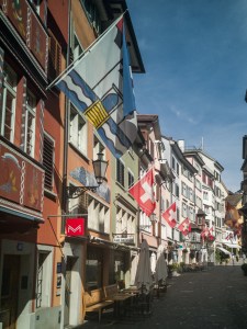 Von hier aus kann man wieder gemütlich den Hügel hinunter spazieren, um durch die Gassen der Altstadt zum belebten Paradeplatz und der wohlgemerkt hochpreisigen Einkaufsmeile in der Bahnhofstraße zu gelangen.